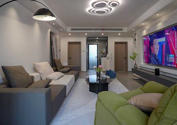本案整體設計為現(xiàn)代簡約風格,三室兩廳戶型。原始戶型較為合理,不做太多改動。僅做一處改動:廚房門打掉了一些墻,擴大門洞,做成推拉門,進出廚房更方便。 查看詳情>>