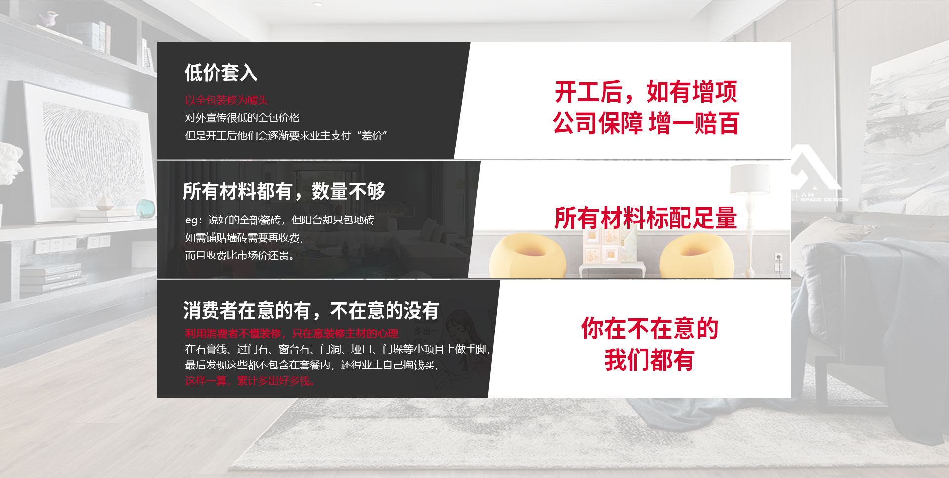 裝修項(xiàng)目包的不全,看似省錢(qián),實(shí)際更花錢(qián)